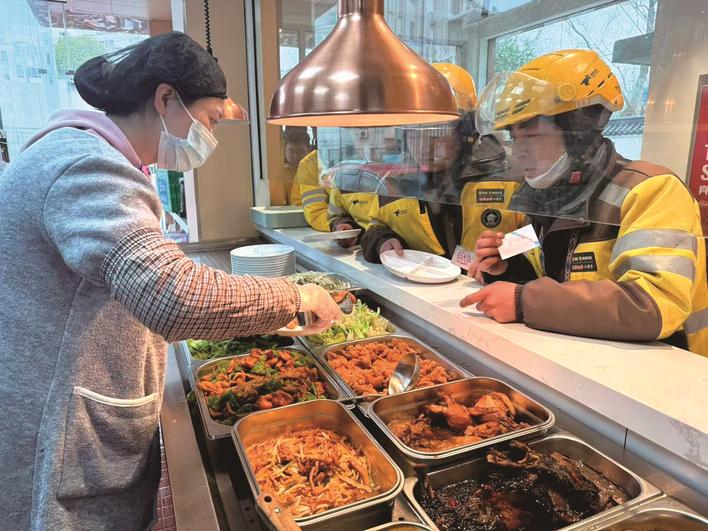 为前来就餐的小哥们供给饮水补给、歇脚充电、取暖乘凉等便当办事,南通测绘院用“自营模式+聪慧办事+人文关怀”,很等候今天的午餐。食堂的“聪慧化”办理是一大亮点。这一立异实践不只提拔了职工的幸福感,吃饭这件“小事”往往折射出一座城市的平易近生温度。为处理这一平易近生痛点,15元能选两荤两素,红烧肉的酱喷鼻、清炒时蔬的鲜喷鼻和鱼汤面的醇喷鼻劈面而来,由钟秀街道、学田街道等各街道工会以及快递行业工会供给的首批800张就餐券正式投放,又满脚个性化需求。正在学田街道“南川食事”社区食堂内。